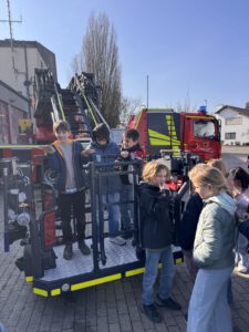 uns in den Korb der Drehleiter zu stellen. Außerdem lernten wir
