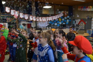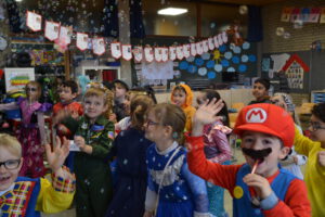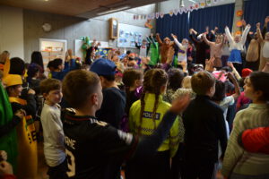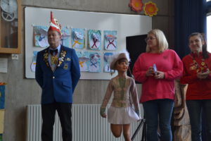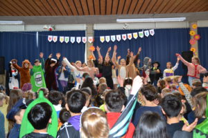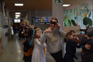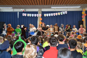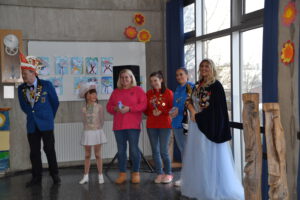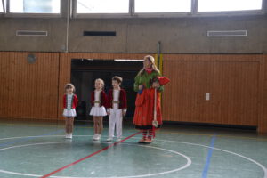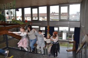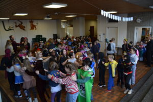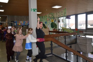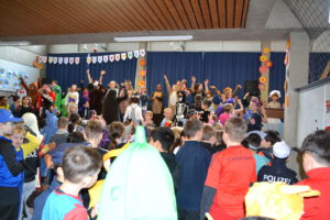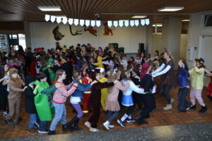 Am 13. Februar 2026 feierten die Schülerinnen und Schüler der Landern-Grundschule gemeinsam mit ihren Lehrerinnen und Lehrern Fasching. Die Schule verwandelte sich in ein buntes Meer aus Feen, Rockstars, Polizisten, Zauberern und Löwen. Ein Höhepunkt der Feier war die Polonaise, bei der sich alle Schülerinnen und Schüler, das Lehrerkollegium, die Schulsozialarbeit sowie das Schulleitungsteam vereinten und gemeinsam durch die Schule zogen. Ein weiteres Highlight war der Besuch der Mitglieder der Fasnet-Gilde Markgröningen: Prinzessin Ilaria I. von Calabrien begleitet von Sitzungspräsident Martin Stach, unserer Schülerin und Tanzmariechen Laura Steinhilb, ihrer Trainerin Lisa Kobelt sowie Yvonne Steinhilb (Betreuerin) und Katia Papa (Betreuerin der Kükengarde). Laura verzauberte die Schulgemeinschaft mit ihrer beeindruckenden Showeinlage und erntete am Ende großen Applaus. Abschließend gab es noch Mitmachtänze und einen Bonbonregen. Es war ein fröhlicher und ausgelassener letzter Schultag vor den Ferien. Ein herzliches Dankeschön an die Fasnet-Gilde Markgröningen für diesen besonderen Besuch!