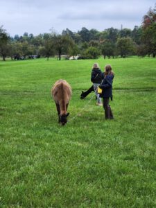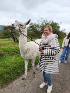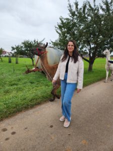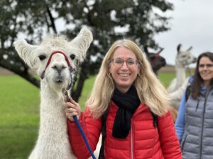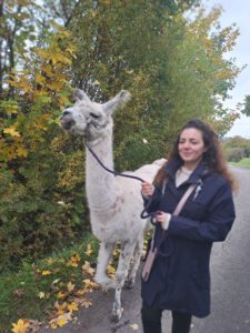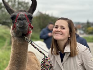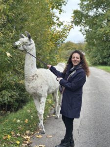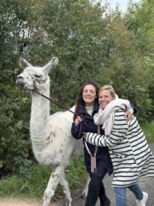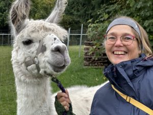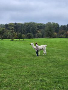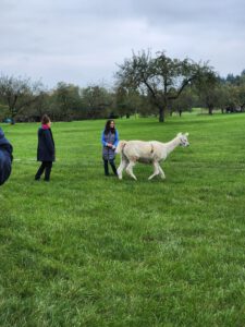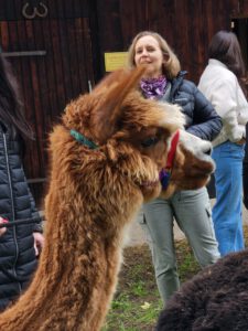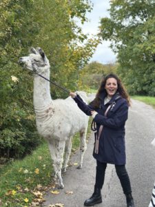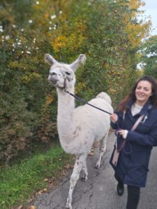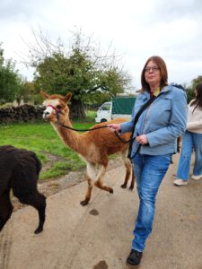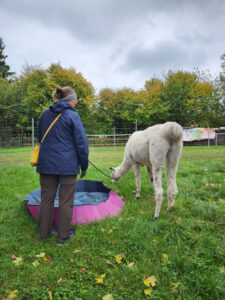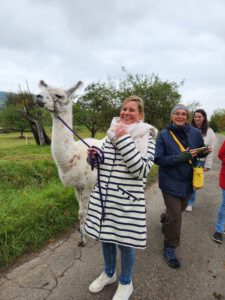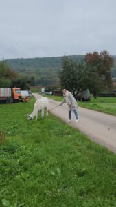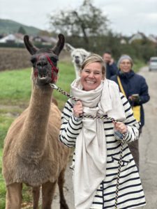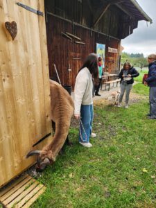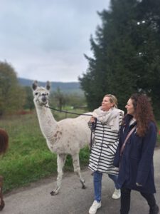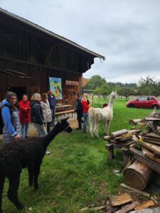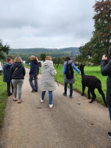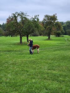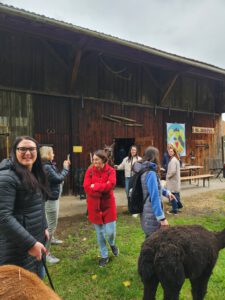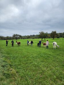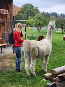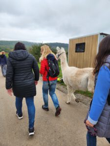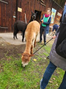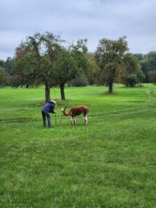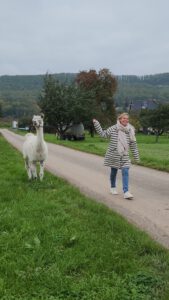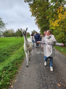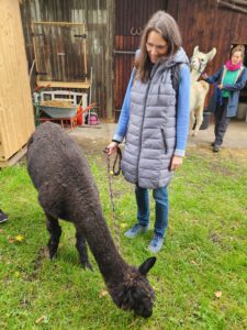 Im Anschluss folgte das Highlight des Nachmittags: eine Lamawanderung in der Umgebung. Begleitet von den entspannten Tieren machte sich das Lehrerkollegium auf den Weg durch die herbstliche Landschaft. Es wurde viel gelacht, erzählt und die besondere Erfahrung, mit den Lamas unterwegs zu sein, sorgte für zahlreiche schöne und lustige Momente.
