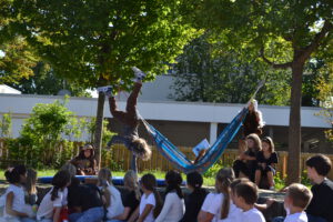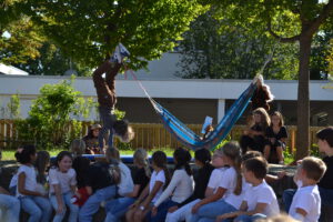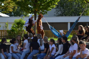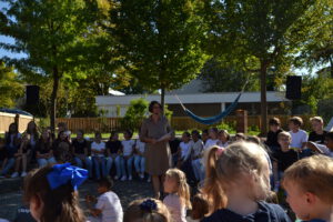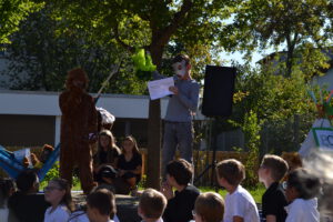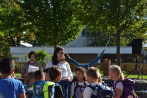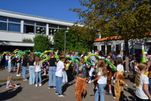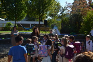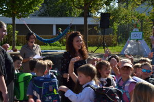 Bei strahlendem Septemberwetter feierte die Landernschule dann am Donnerstag, den 18.09.2025, die Einschulung ihrer Erstklässlerinnen und Erstklässler. Um 14 Uhr begann der festliche Tag mit einem Schulanfangsgottesdienst in der Heilig-Geist-Kirche. Im Anschluss versammelten sich Kinder, Eltern, Geschwister, Familienangehörige sowie Lehrerinnen und Lehrer der Landernschule auf dem Schulhof zur offiziellen Schulaufnahmefeier. Dort begrüßte Frau Scharpfenecker die Gäste herzlich. Ein besonderes Highlight war der Beitrag der Viertklässlerinnen und Viertklässler, die mit Tanz und einem Theaterstück nach dem Kinderbuch „Der Löwe, der nicht schreiben konnte“ für Begeisterung sorgten. Insgesamt 66 Kinder wurden anschließend feierlich in die Schulgemeinschaft aufgenommen. Sie wurden ihren Klassenlehrerinnen Frau Feucht (Vorbereitungsklasse), Frau Schmugge (1a), Frau Conte (1b) und Frau Golob (1c) zugeteilt und durften gleich ihre erste Unterrichtsstunde erleben. Währenddessen wurden die Eltern und Gäste mit Speisen und Getränken bewirtet. Ein herzlicher Dank geht an die Eltern der Viertklässlerinnen und Viertklässler für die Bewirtung. Wir wünschen allen Schulanfängerinnen und Schulanfängern einen guten Start an der Landernschule und viel Spaß beim Lernen.